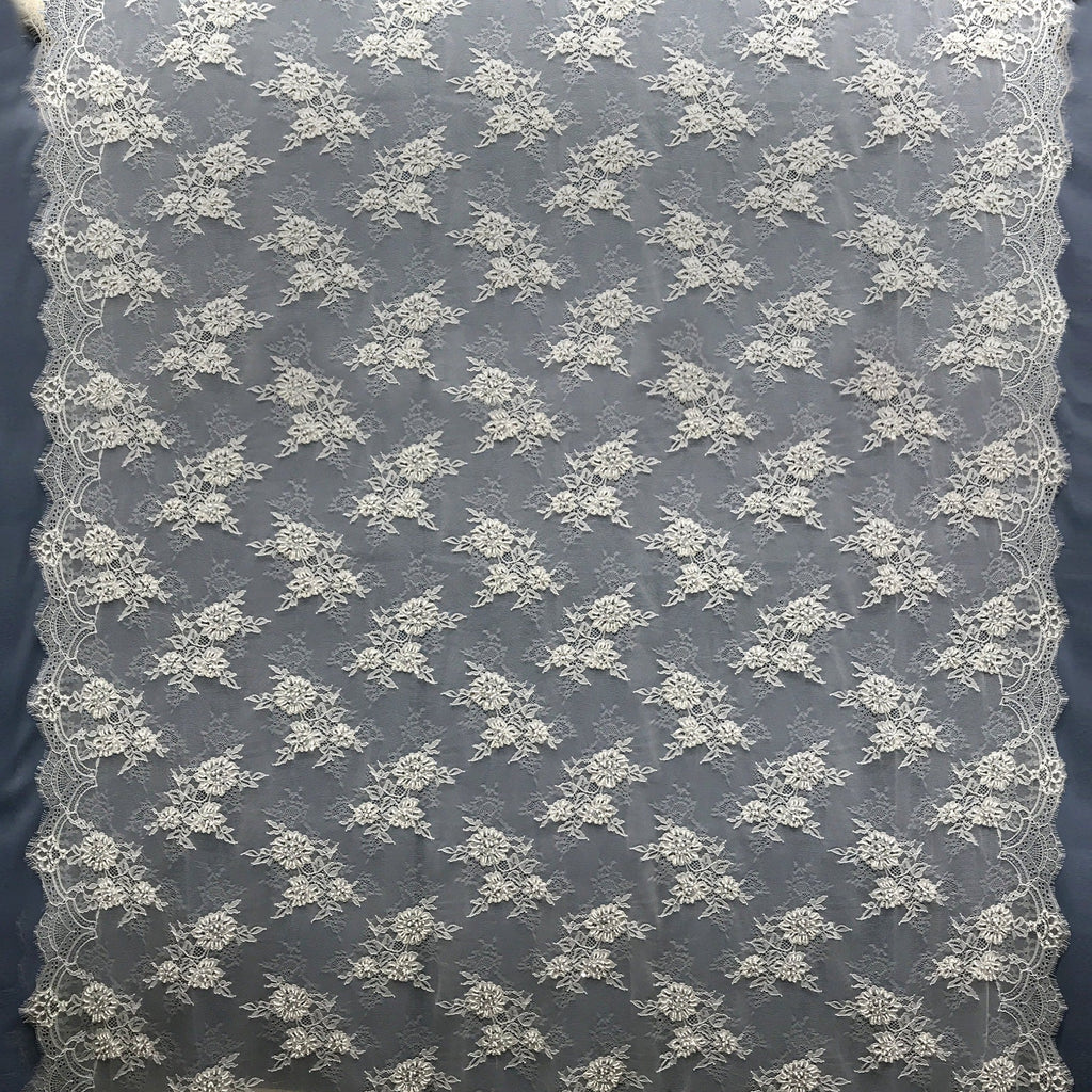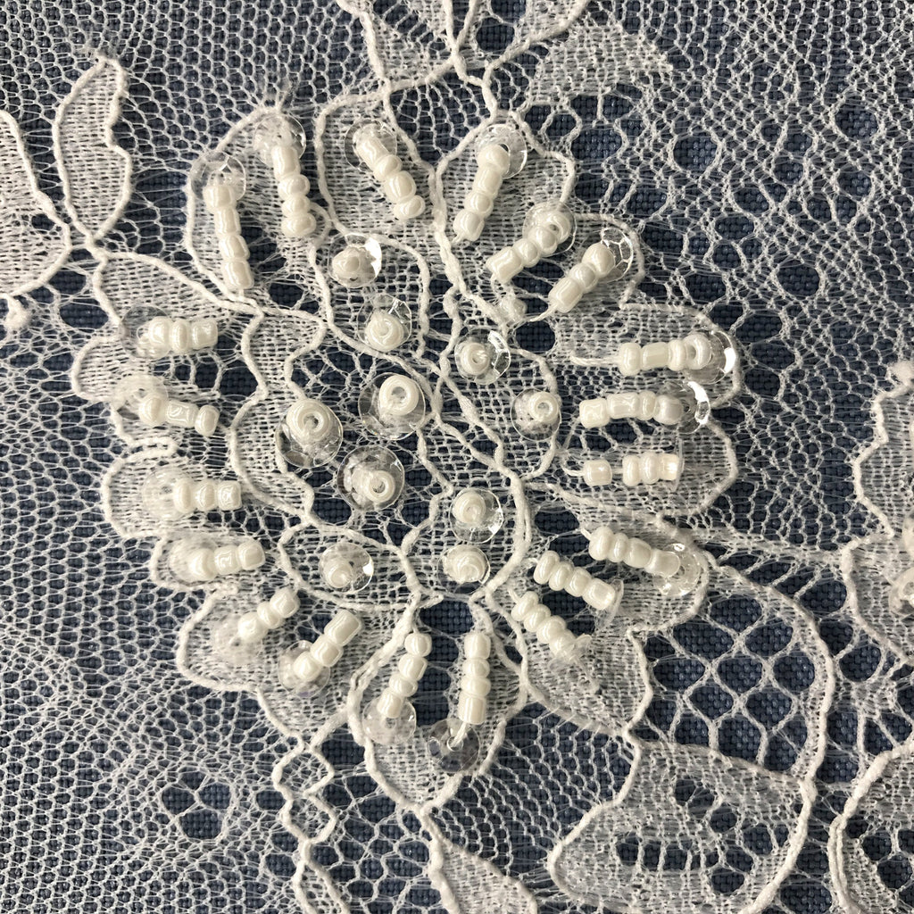 Beaded Chantilly Embroidered Lace Fabric with Eyelash Scallop - 3 Yards | Lace USA - 68136W-BP
