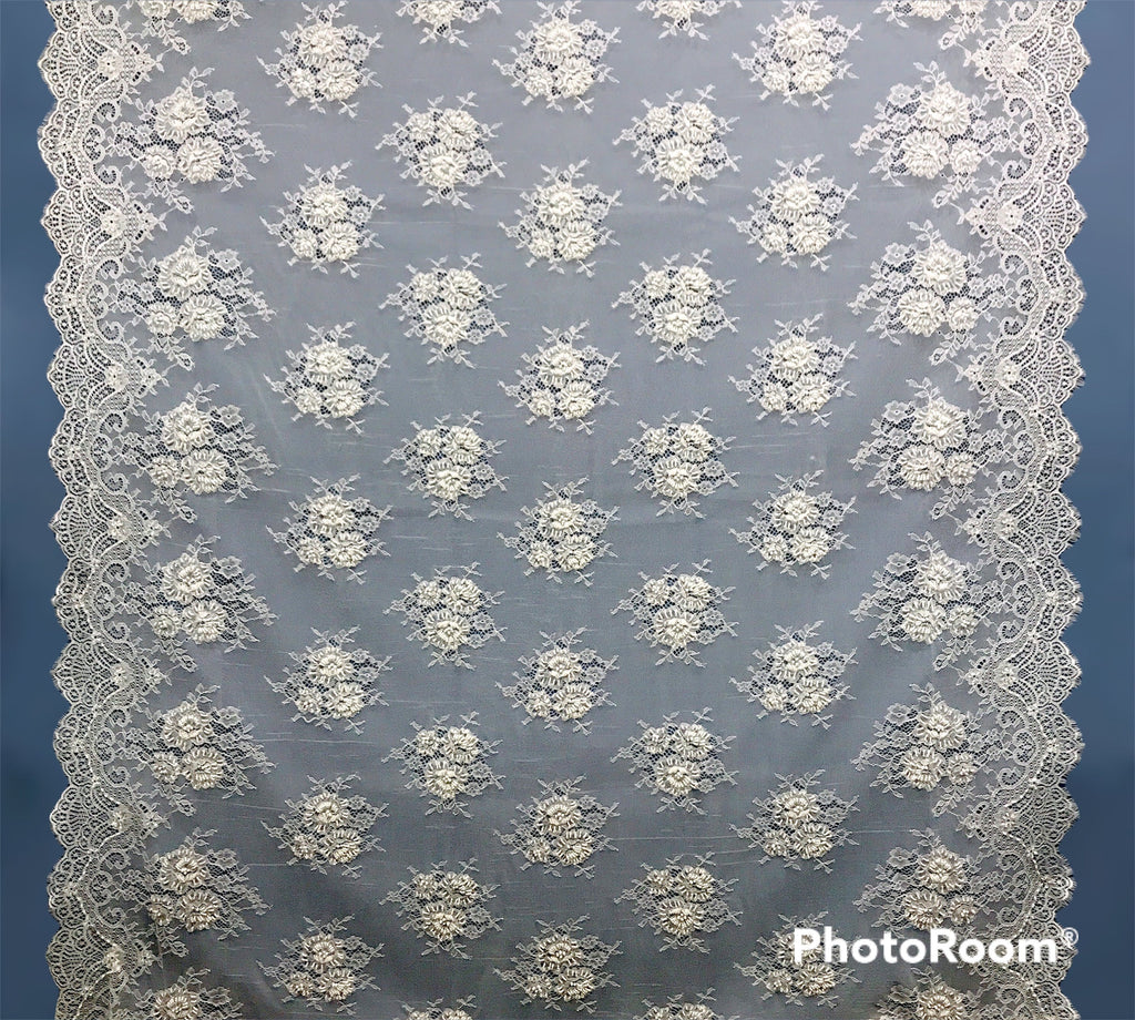 Beaded Chantilly Embroidered Lace Fabric with Eyelash Scallop - 3 Yards | Lace USA - 68138W-BP