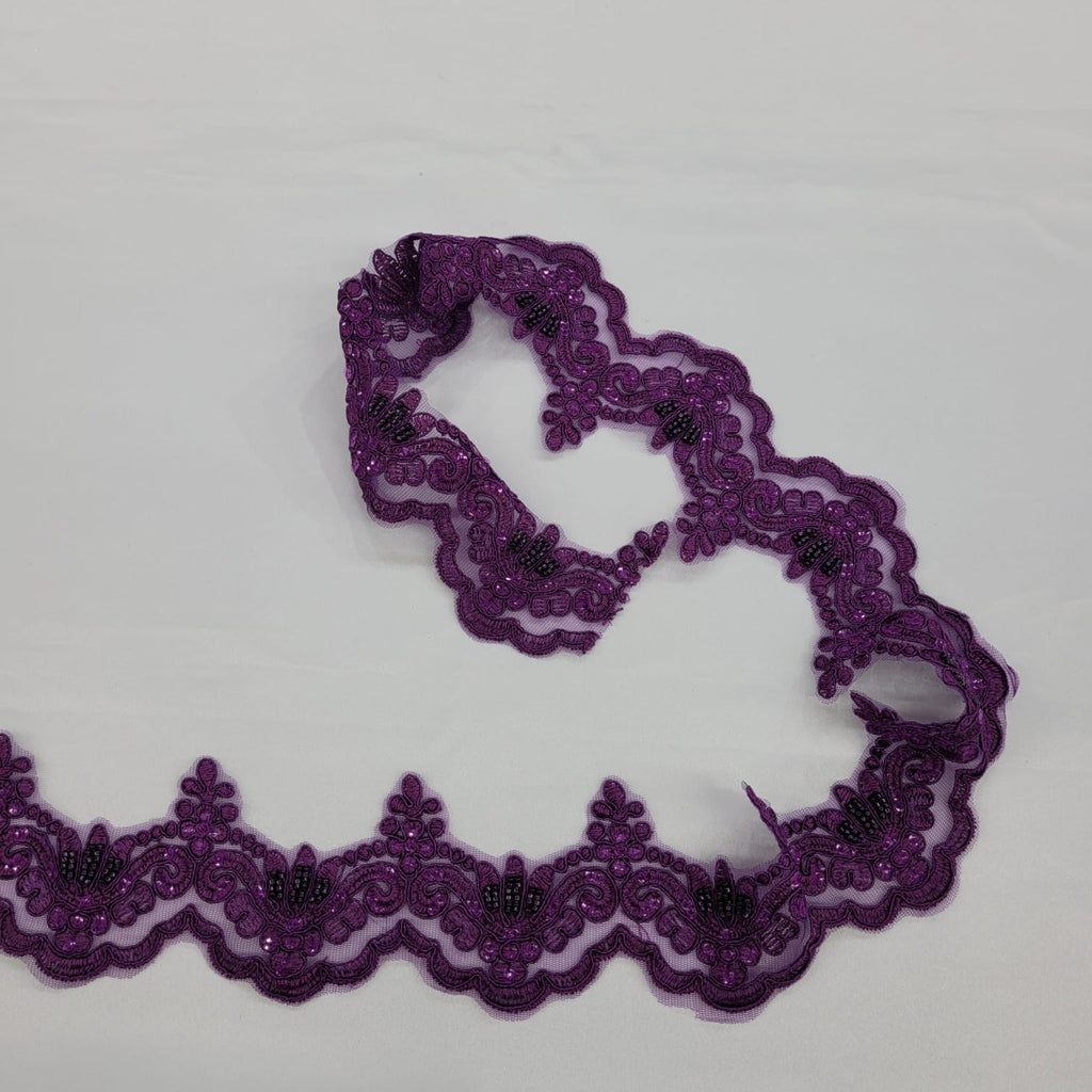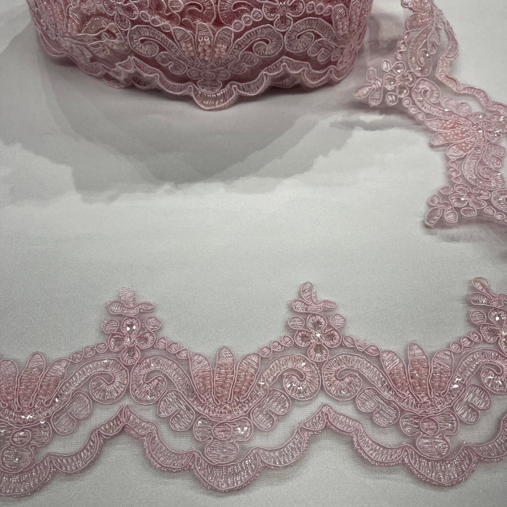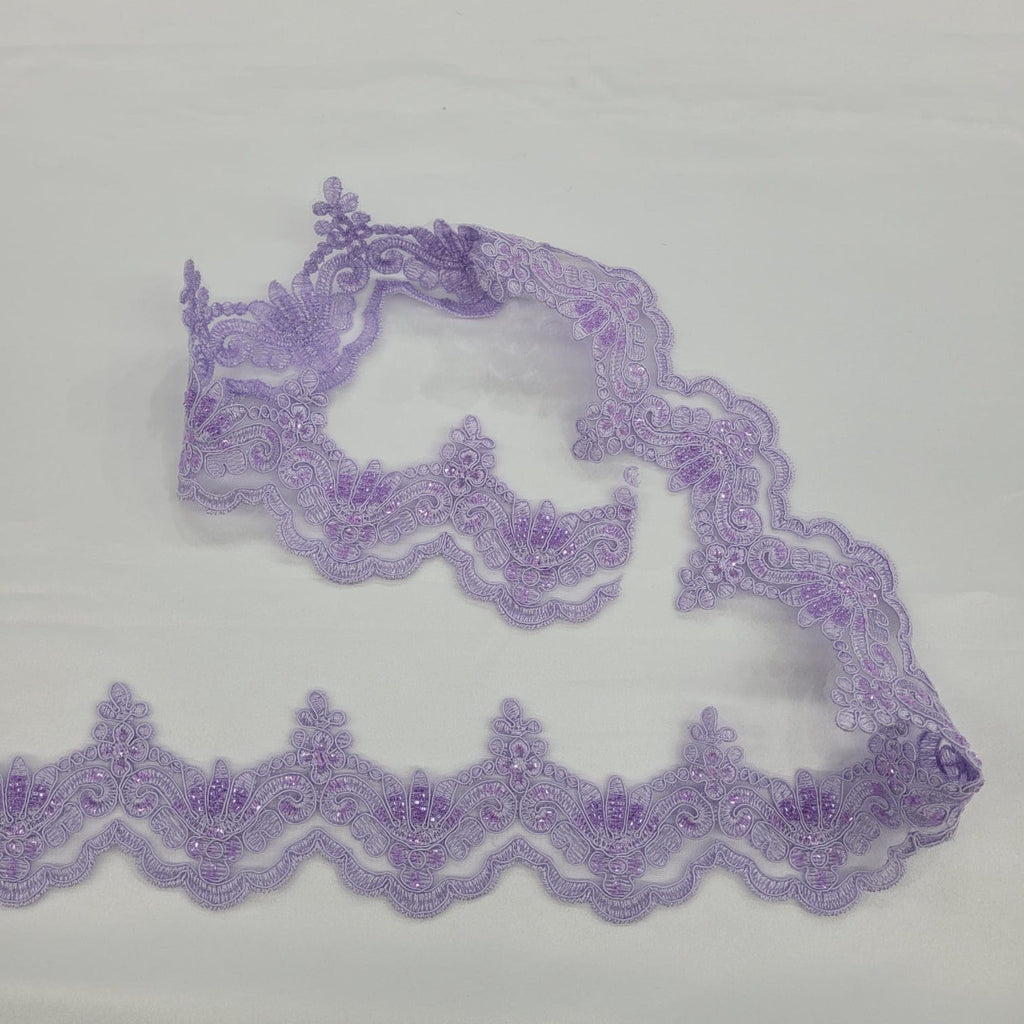 Beaded & Corded Lace Trimming Embroidered on 100% Polyester Net Mesh | Lace USA - KZ-34W-HB