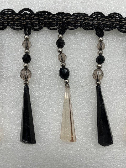 Beaded Fringe with Decorative Braid Trim - 5 1/2" width (15 Yard Rolls) - BB-904-02 Black