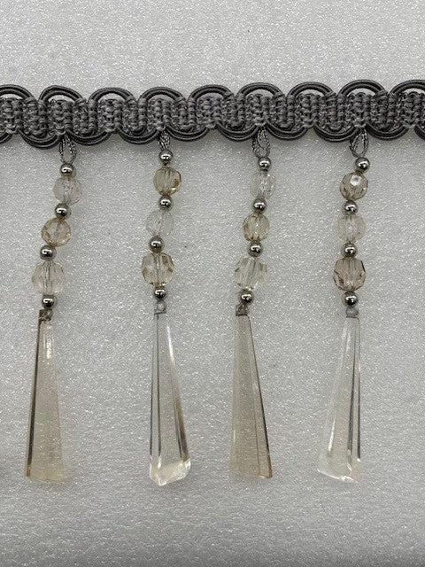 Beaded Fringe with Decorative Braid Trim - 5 1/2" width (15 Yard Rolls) - BB-904-49 Grey
