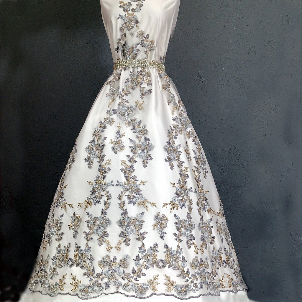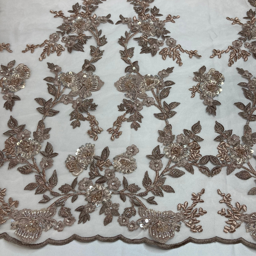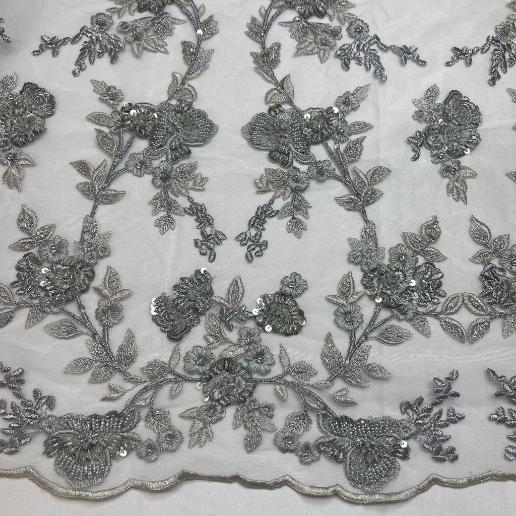 Beaded Lace Fabric Embroidered on 100% Polyester Net Mesh | Lace USA - GD-117