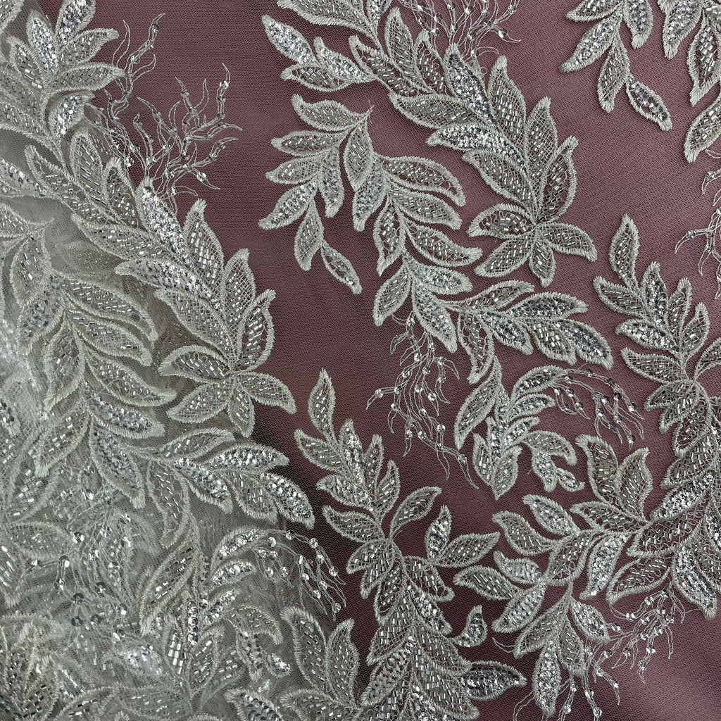 Beaded Lace Fabric Embroidered on 100% Polyester Net Mesh | Lace USA - GD-13331
