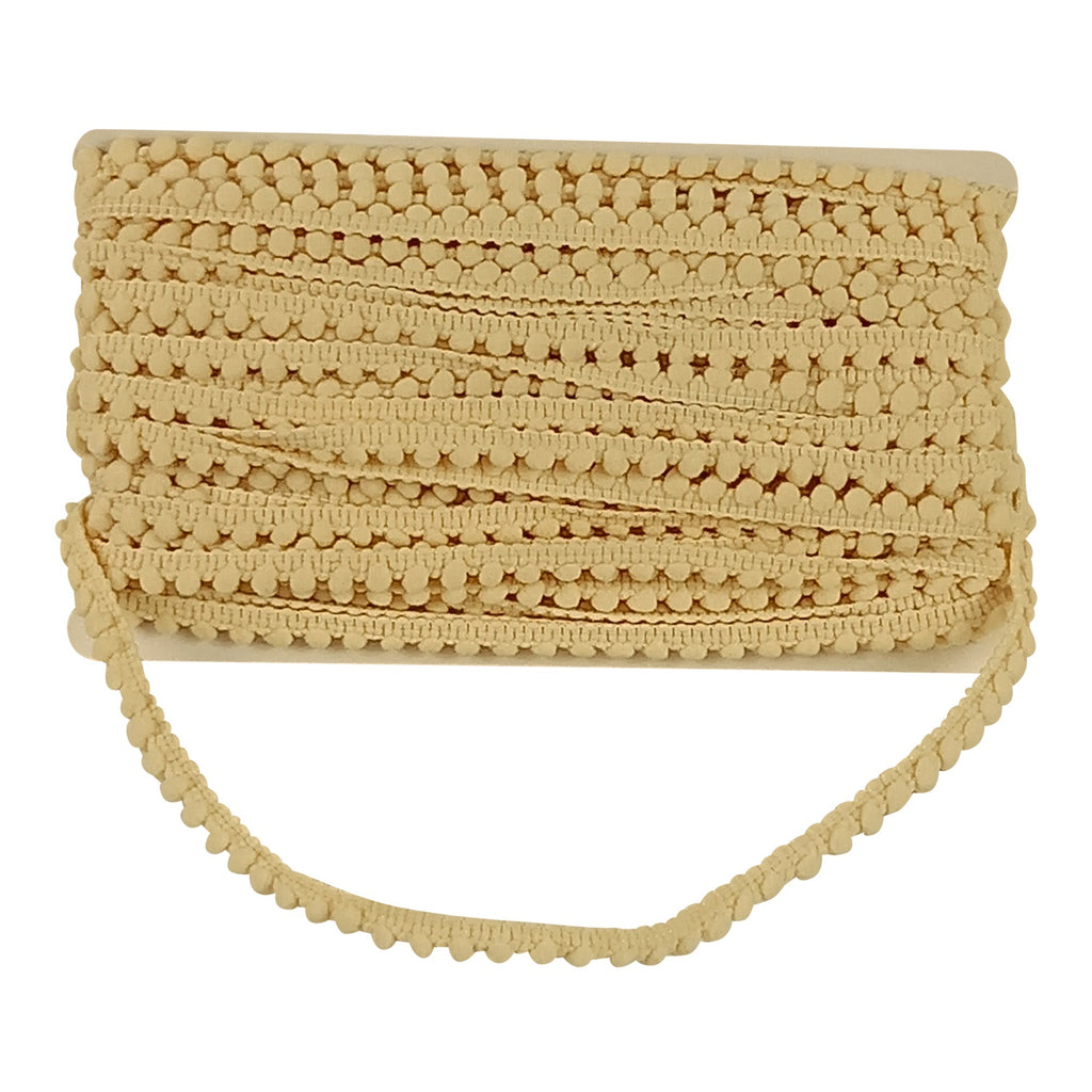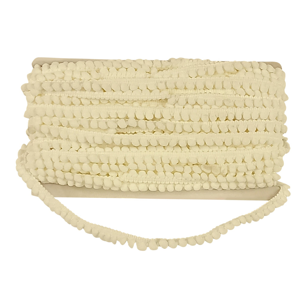 3/16" width Mini Pom pom sold in 25 yard rolls. Available in 23 colors.Â