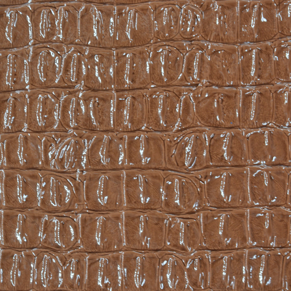 Add a luxe, exotic touch to your projects with our Faux Crocodile Vinyl in toffee brown. This embossed vinyl mimics real croc skin and features a semi-gloss finish with a soft backing for easy sewing or gluing.