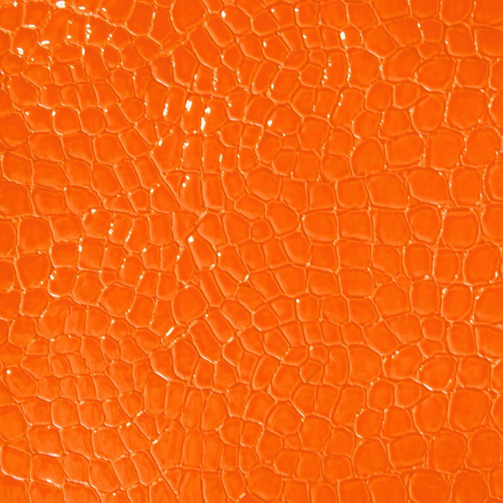 Add a luxe, exotic touch to your projects with our Faux Snake Vinyl in Orange. This embossed vinyl mimics real croc skin and features a semi-gloss finish with a soft backing for easy sewing or gluing.