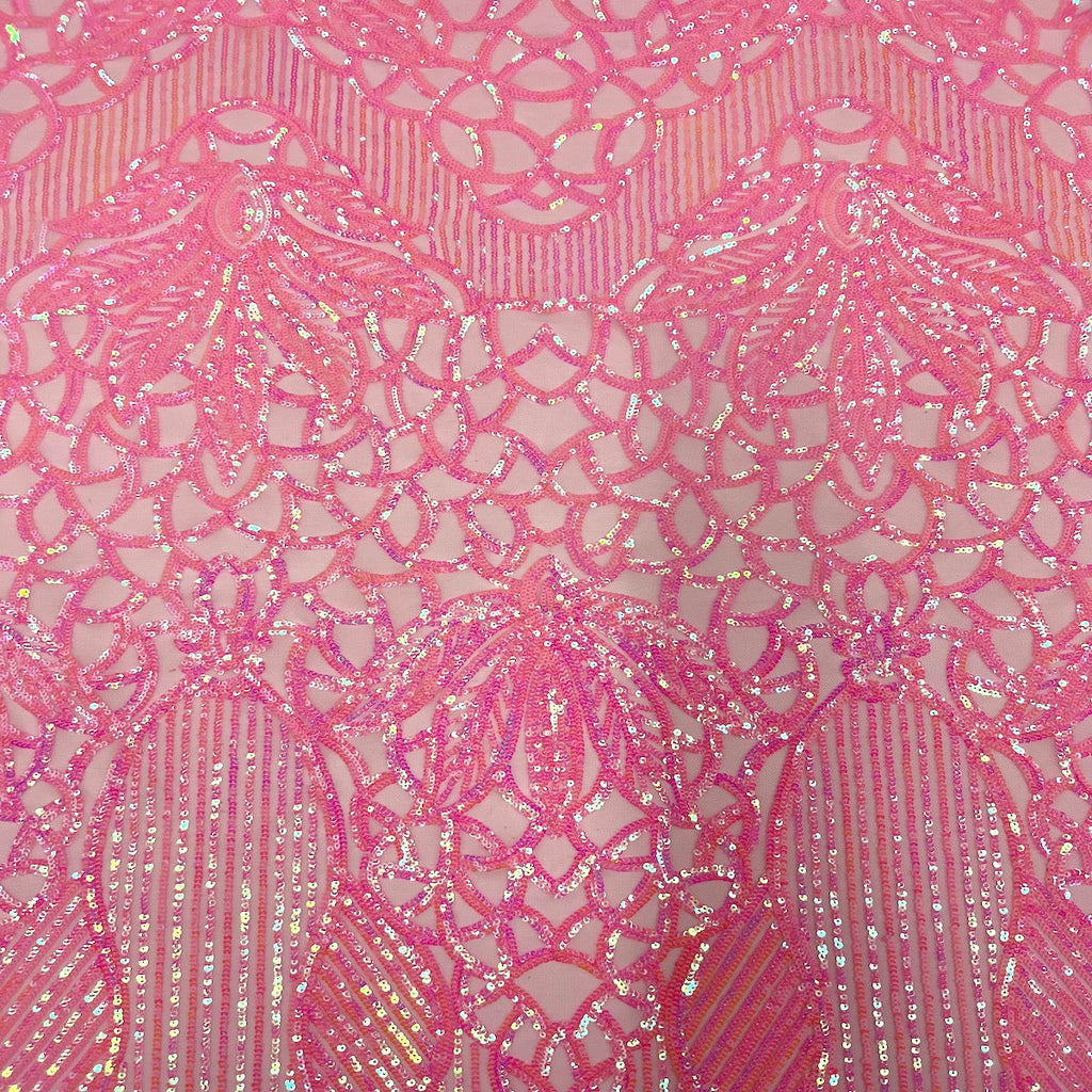 Discover the elegance of our stretch sequins lace fabric, designed to elevate your creations. Each piece is backed with a luxurious four-way stretch nylon mesh, ensuring comfort and flexibility, while a stunning sequin design adorns the entire fabric for that extra sparkle. Sold by the yard, you can enjoy the convenience of receiving your fabric in a continuous piece when ordering multiple yards. For example, ordering two yards will yield a generous piece measuring 60" x 72".