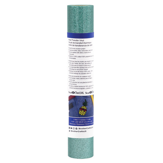 Customize your crafting projects with the Brother ScanNCut Heat Transfer Vinyl (3ft Roll), measuring 11.8" x 36" with a thickness of 3.54 mm. Perfect for personalizing your wardrobe or adding a unique touch to party projects like t-shirts and totes, this versatile vinyl can be used to decorate virtually any material. Whether you're working on tees, tote bags, home decor, or more, this iron-on vinyl applies effortlessly using either a home iron or heat press. It adheres well to a variety of fabrics, including 100% cotton, 100% polyester, poly-cotton blends, and even leather, making it a go-to choice for all your creative needs.