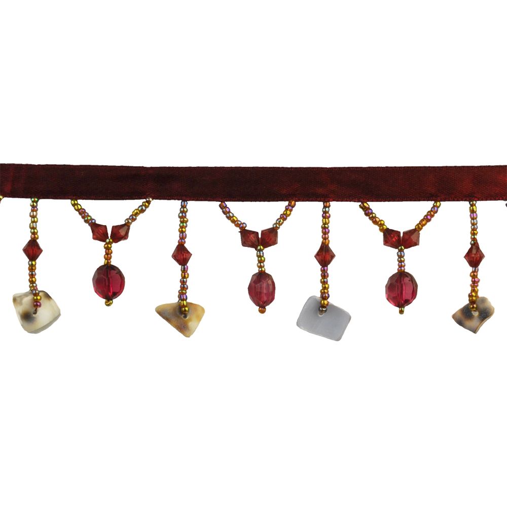 Charm Collection - 2" wide SHELL BEADED FRINGE (15 YDS) - BB-919-17 Wine Red