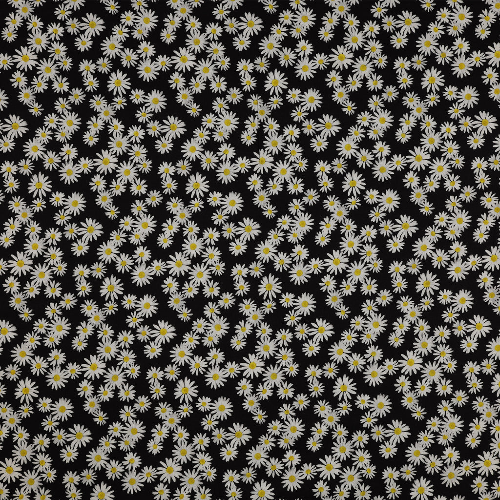 Bold and modern, Daisy Dance Black pairs crisp white daisies with a rich black backdrop for a striking, high-contrast look that immediately grabs attention. The flowers seem to glow against the dark ground, giving the print a fresh, contemporary edge while still offering the comforting familiarity of classic daisies. This colorway is perfect for adding drama to quilt backs, elevating home décor accents, or creating stylish floral-themed accessories with a touch of elegance. Whether you’re aiming for sophisticated charm or a dramatic statement, this print delivers depth, dimension, and timeless botanical beauty.