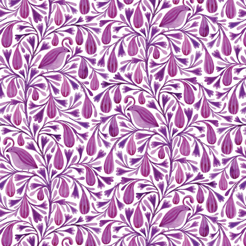 Dark Magenta Prince Birds and Branches Cotton 44”/45” Fabric Per Yard