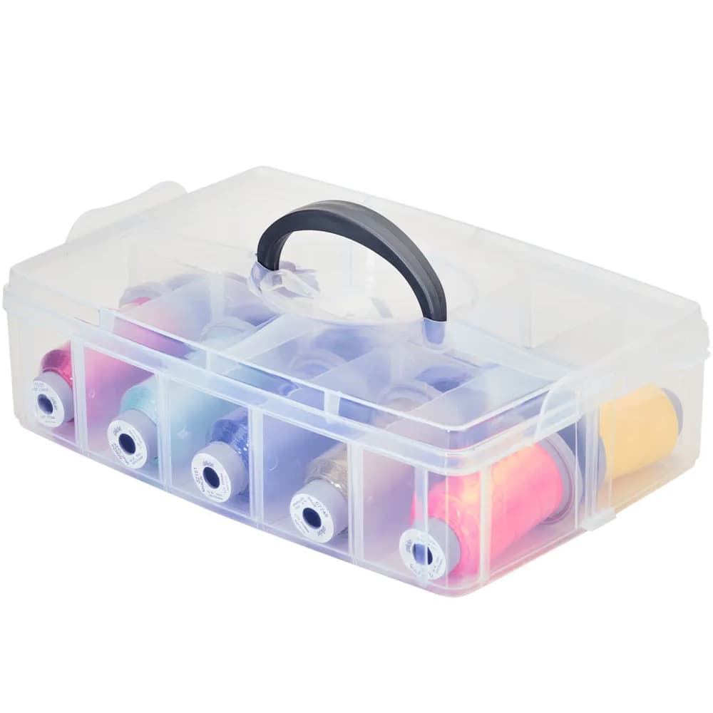 Kimberbell's whimsical Candy Cane Lane Thread Collection celebrates the wonder of the holiday season. Each color in this collection was carefully curated to give you the best holiday color representation. This 10-spool set comes in a hard plastic carrying case that makes transportation a breeze. Colors include: Wildflower (71935), Tidewater (65483), Mint Julep (60624), Taffy (71775), Sage (67748), Marlin (32151), Cashmere (17527), Coffee Bean (27518), Cornflower (80120), and Super White (10002).