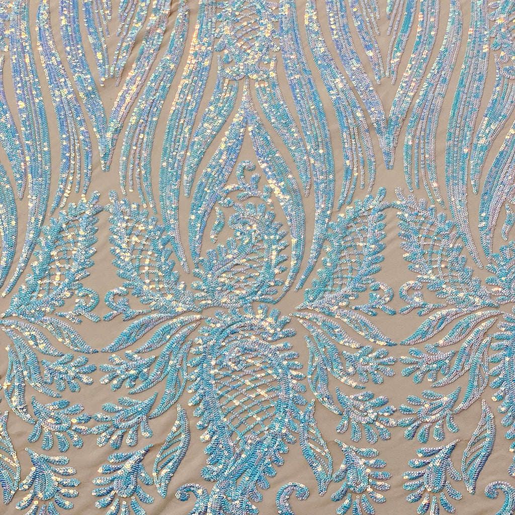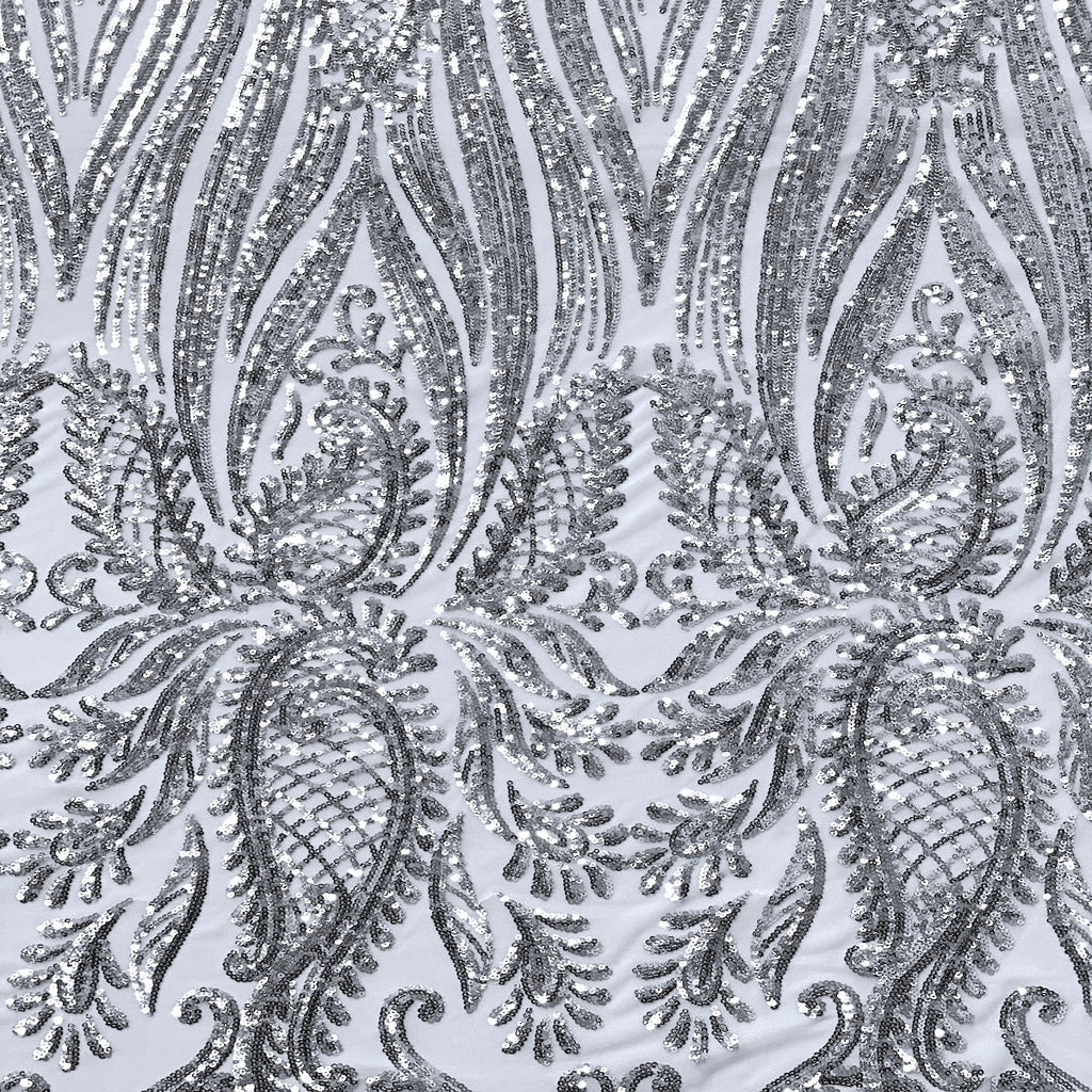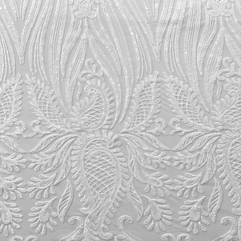 The fabric showcases a pattern repeat of 12", offering a consistent design that enhances any project. Whether you're creating elegant dresses for prom, weddings, or evening events, or designing stylish accessories, handbags, or table skirts, this fabric is versatile enough to meet all your creative needs.