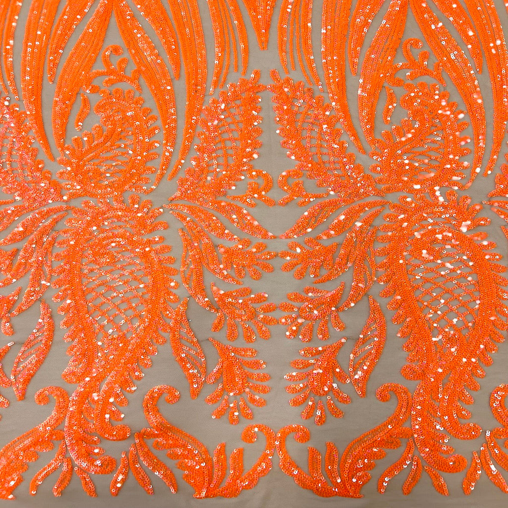 This exquisite fabric features a mesh width of 60" and a sequins design width of 52", crafted from a blend of polyester, nylon, and spandex for a luxurious feel. With a remarkable 4-way stretch, it effortlessly adapts to your designs, making it ideal for form-fitting applications.