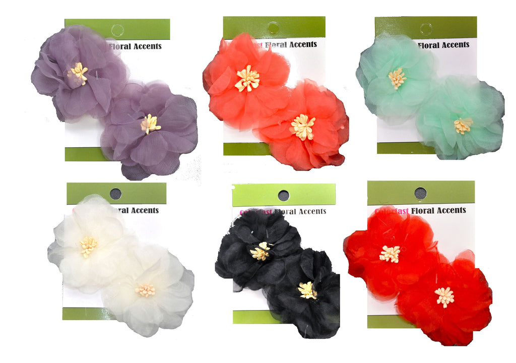 Organza Flower Appliqués - 12pcs 2 1/2" round (6 Cards Per Order) - BPP-A1-27 White