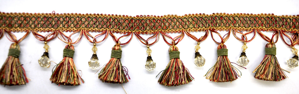 Paulette Collection-4" length-BEADED TASSEL FRINGE - `Wine Red and Gold