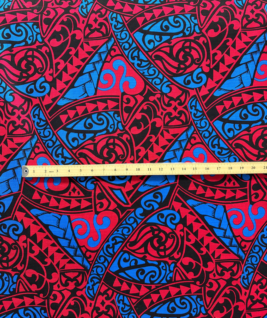 Polynesian Tribal Triangle formation design Fabric | Light Barkcloth