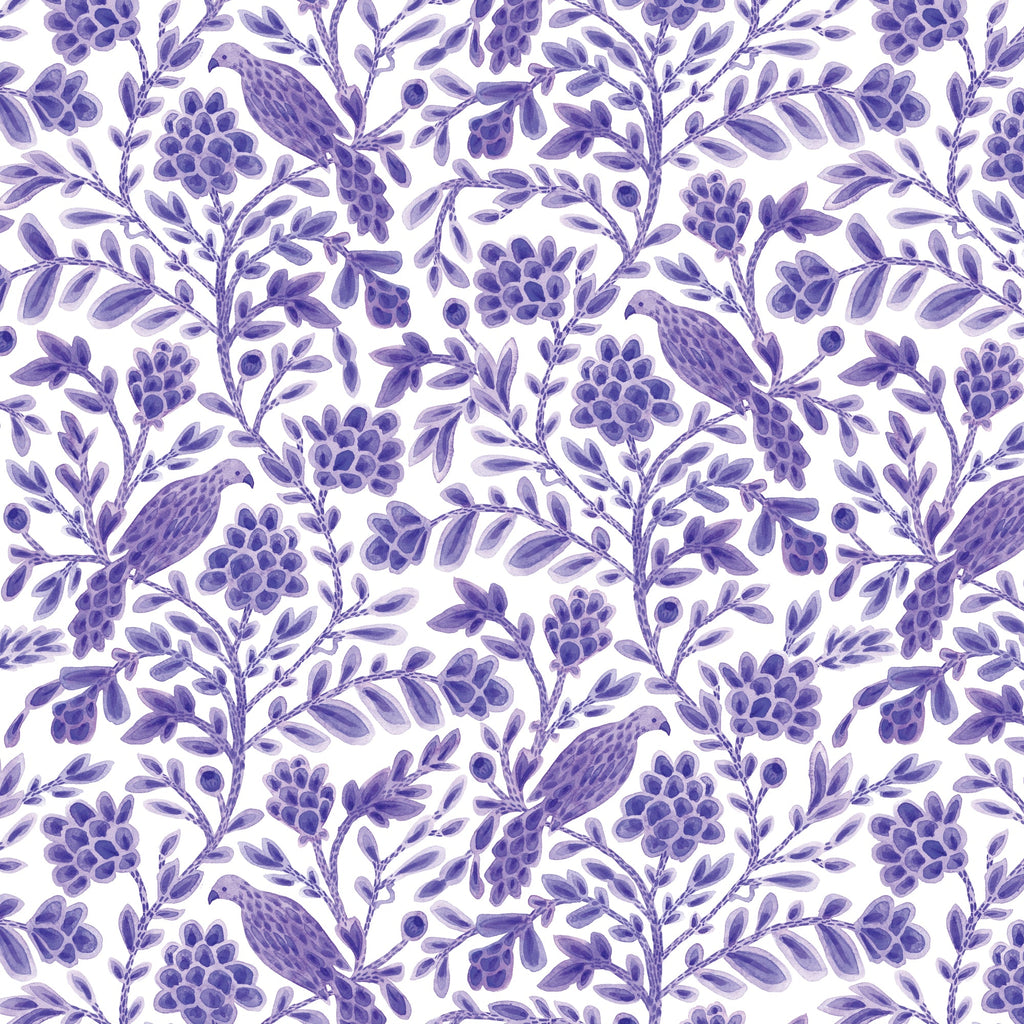 Purple Yolanda Birds and Branches Cotton 44”/45” Fabric Per Yard