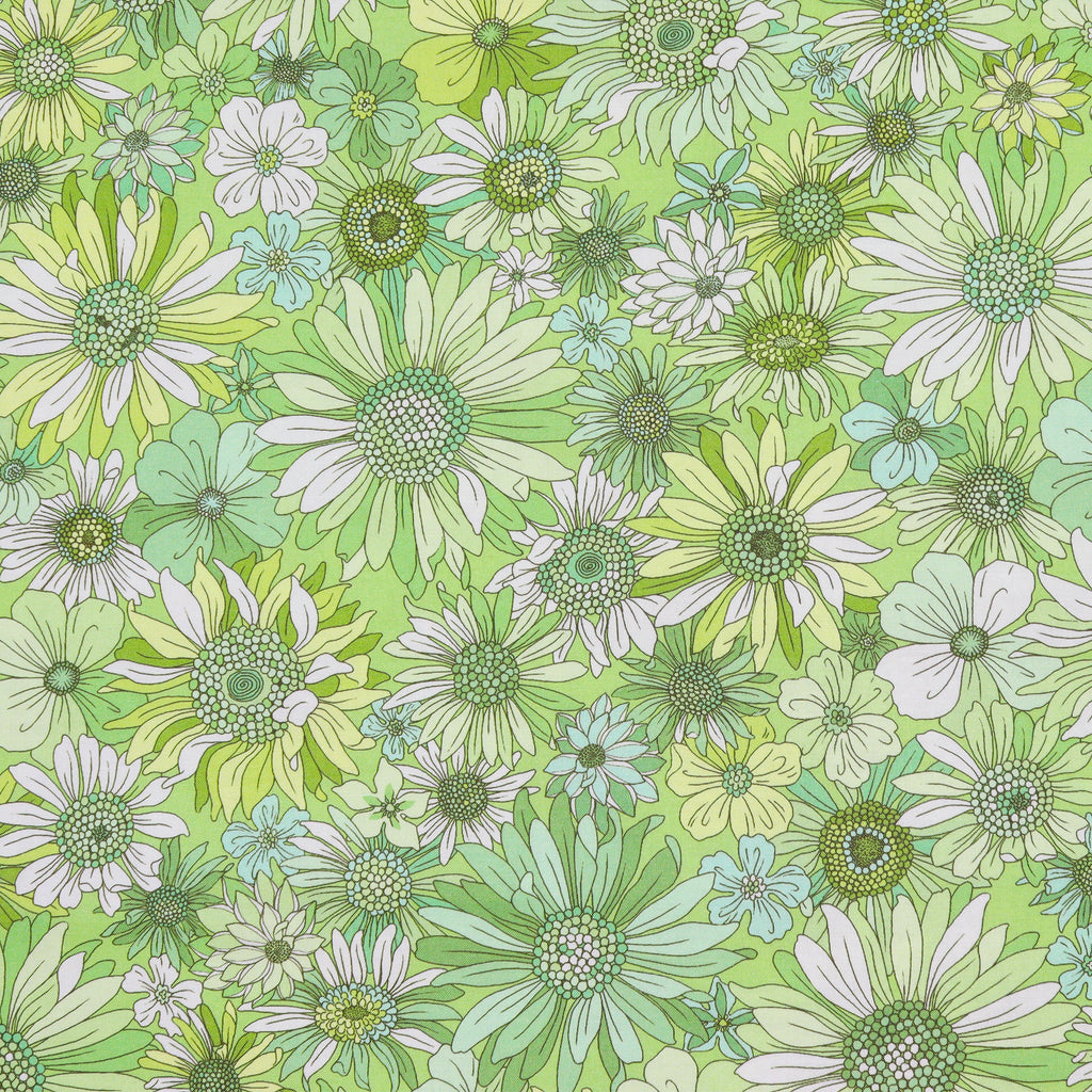 Pat Sloan’s Sleepovers 108” Wide Quilt Backing in Best Friends Green celebrates the playful energy of childhood sleepovers with a lively mix of daisies in soft mint, leafy green, and pale aqua. Made from 100% cotton, this wide backing fabric is breathable, soft to the touch, and generously sized at 108” to cover even large quilts without the need for piecing.