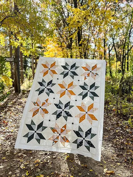 Star of Wonder is the perfect pattern for Fat Quarter Bundles with coordinating fabrics. Mix and match fat quarters with similar volumes/colors to create the color balance and aesthetic that is most pleasing to you.  You can also make this completely scrappy and cozy with your favorite fabrics you have been holding onto. Just arrange each star with varying saturations that are dark, medium, and light.