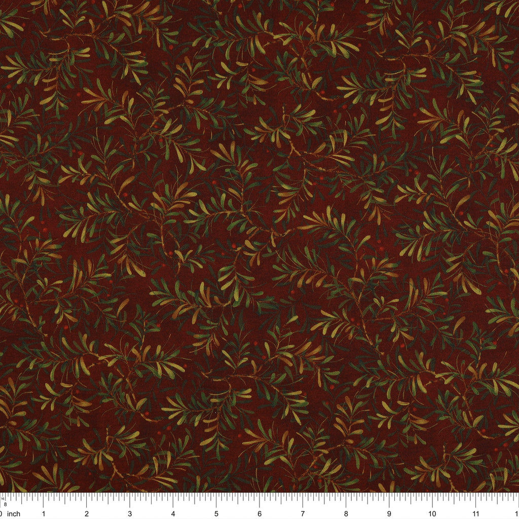 Bursting with seasonal richness, Pine Boughs Red looks like a cozy evening captured in fabric form. Deep red tones glow beneath sweeping pine branches, creating a lush tapestry of color and movement. The interplay of warm and cool greens against the red background adds dimension, giving each branch a lifelike softness. Its 108" width means your quilt back becomes a continuous field of festive beauty—no piecing required. Ideal for Christmas quilts, heirloom throws, or winter décor, this print infuses every project with heartfelt charm.