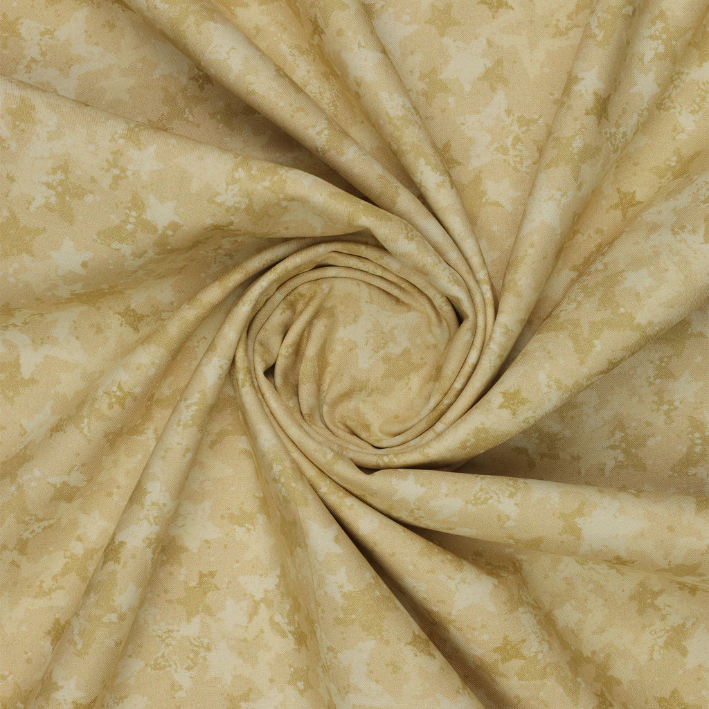 There's something wonderfully peaceful about the way Star Light Cream settles over a quilt, like soft moonlight drifting across a quiet room. Its gentle cream tones let the scattered stars shimmer subtly, creating a backdrop that feels calm, inviting, and timeless. Each star appears brushed in soft texture, adding a sense of hand-touched warmth that brings comfort to the entire quilt. The wide 108" design makes it easy to finish larger projects without seams interrupting the glow. Perfect for quilts meant to soothe, comfort, or brighten a cherished space, this fabric wraps your work in a soft celestial hush.