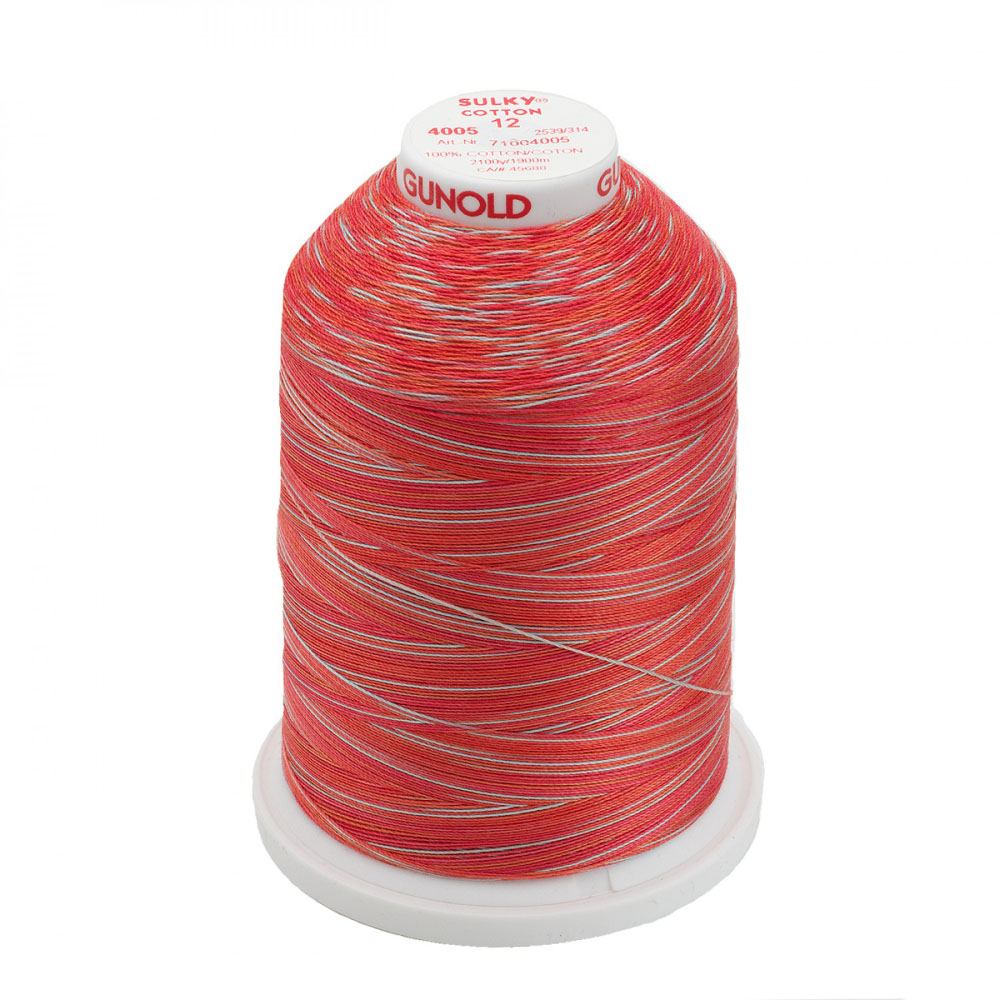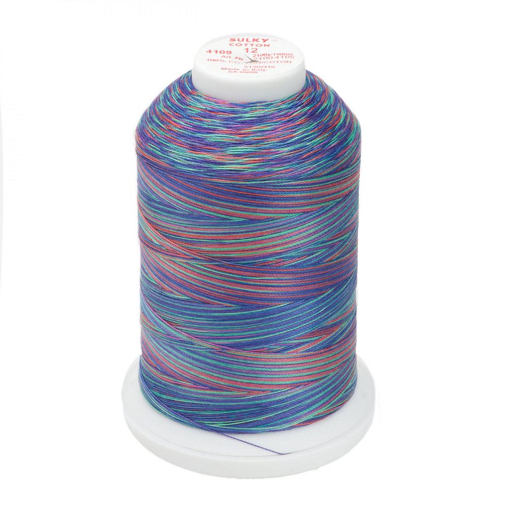 Add pops of color to your next sewing or quilting project with Sulky Blendable Thread. This multi-colored thread is ideal for quilting, thread painting, decorative embroidery, cross-stitch, needle punch, and more! Sulky's variegated threads feature a masterful blend of different colors within the same range of tone and intensity, with random, subtle color changes every 2-1/2" to 5"! Made using 100% Egyptian Cotton, this 12-weight, 2-ply thread offers an eclectic mix of colors that is sure to complement any project you use it in. Each spool of Sulky's Blendable Cotton Thread contains 2100-yards and is washable and dryable.