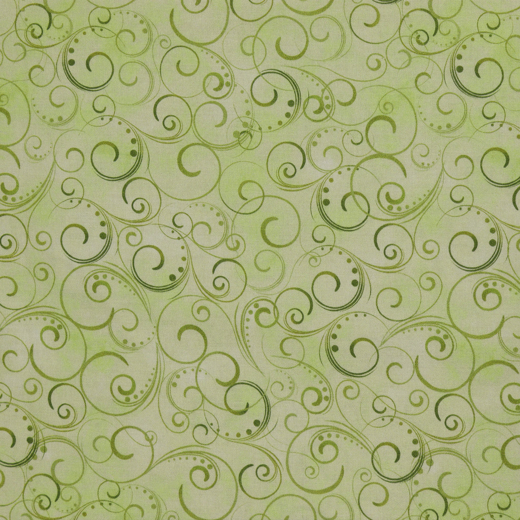 Let your quilt radiate with the grounding beauty of nature using the Swirling Splendor 108" Wide Quilt Backing in Moss Green. This richly layered design features elegant scrolls and dot accents that sweep across a soft green watercolor base, echoing the look of trailing moss or curling vines on a forest floor. Earthy yet refined, it brings a touch of organic movement to any project—perfect for garden-inspired quilts, woodland themes, or simply adding a lush and lively finish to your backing.