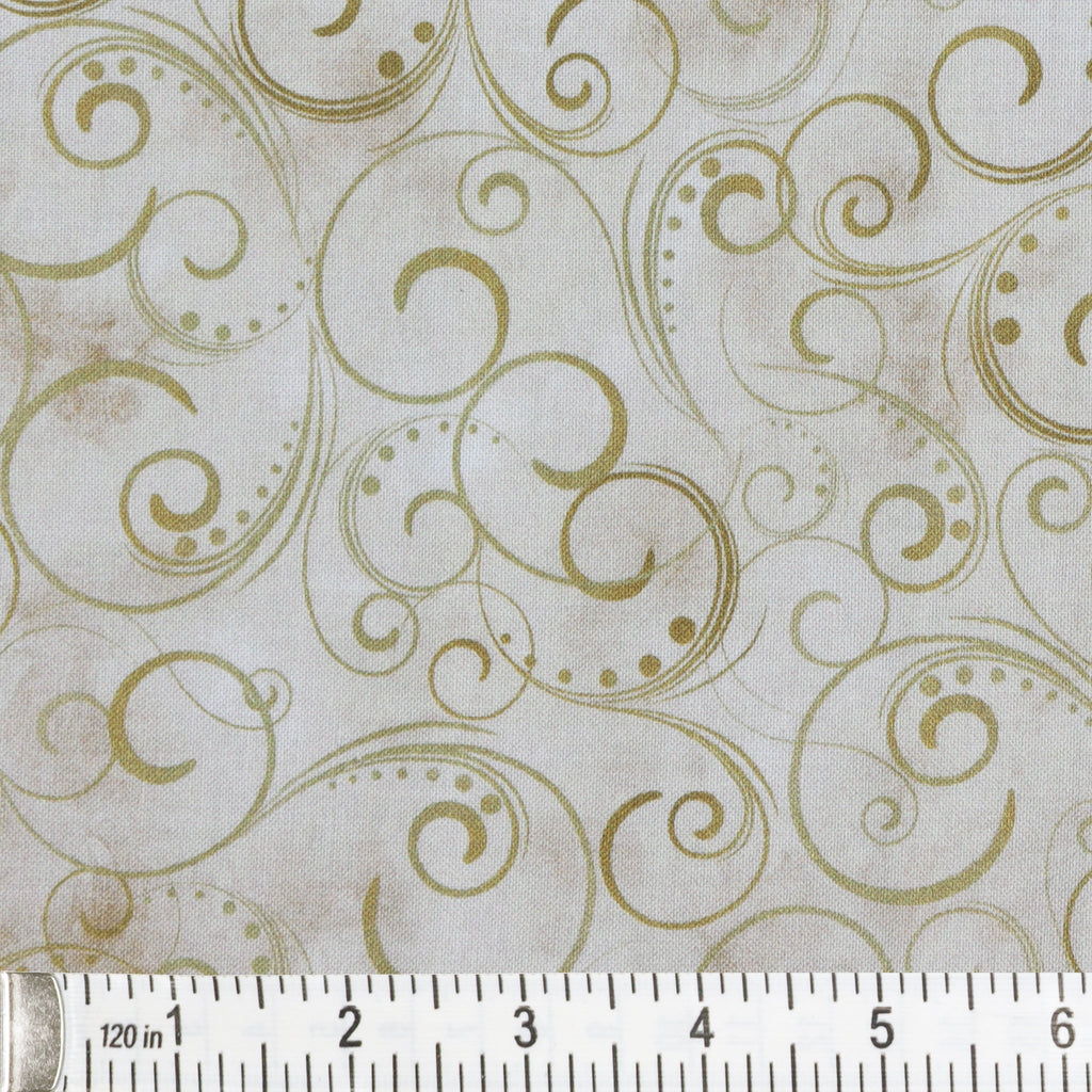 Elevate your next quilt project with the subtle elegance of the Swirling Splendor 108" Wide Quilt Backing in Tan. This beautifully muted fabric features delicate golden tan scrolls dancing across a creamy neutral background, creating a timeless, tone-on-tone effect that complements both traditional and modern quilts. Designed for wide back usage, it eliminates the need for piecing, making it an ideal choice for large projects like bed quilts, wall hangings, or longarm quilting. With its graceful movement and soft palette, Swirling Splendor adds just the right amount of texture and sophistication without overwhelming your quilt top.