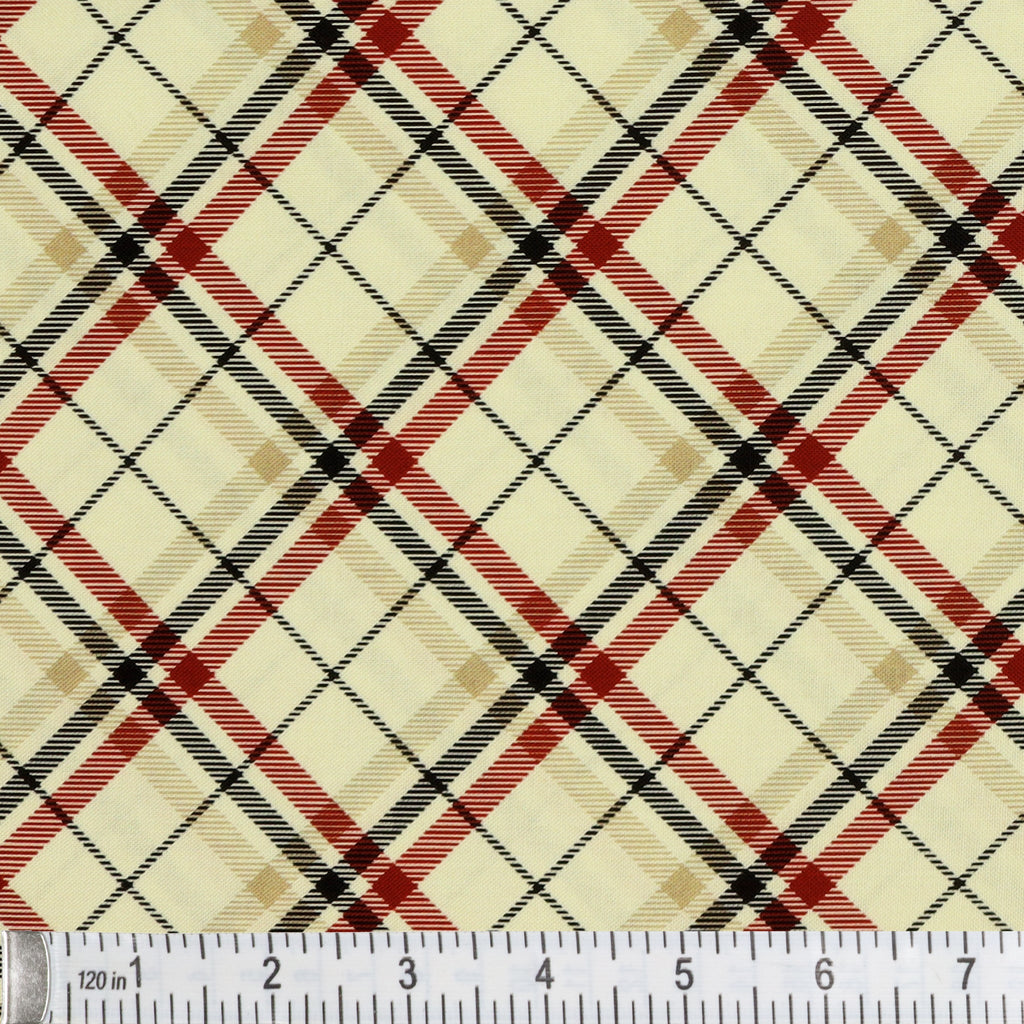 Bring timeless charm to your quilt projects with Tartan Plaid Quilt Backing in Cream. Featuring clean, classic lines and a harmonious blend of red, black, and olive green against a warm cream backdrop, this fabric captures the cozy essence of flannel shirts and festive traditions. Ideal for holiday quilts, heirloom pieces, or rustic décor accents, this plaid adds structure and style to your space. Its versatile design pairs effortlessly with Christmas fabrics and traditional color schemes, ensuring your quilt looks polished from every angle.