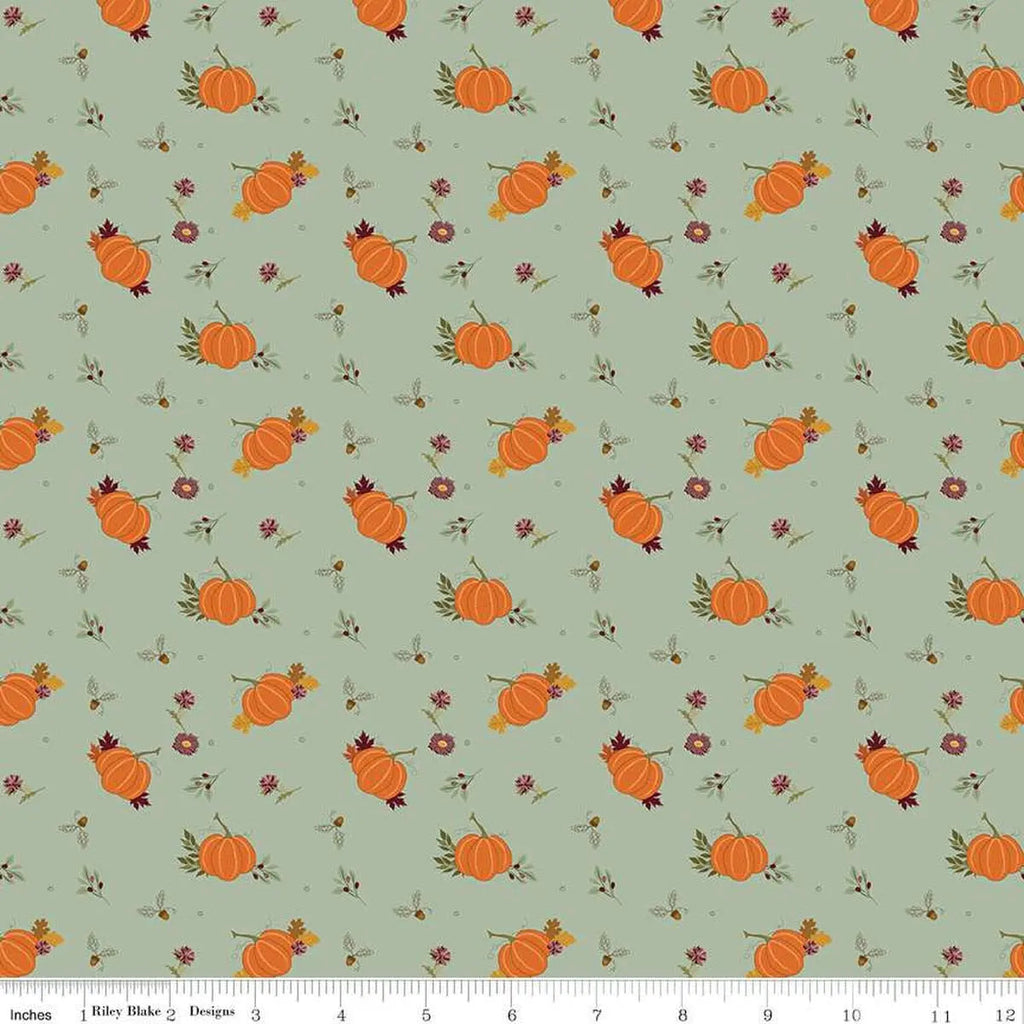 The Awe of Autumn by Sandy Gervais for Riley Blake Designs is great for quilting, apparel and home decor. This print features scattered pumpkins and sprigs of flowers and leaves.