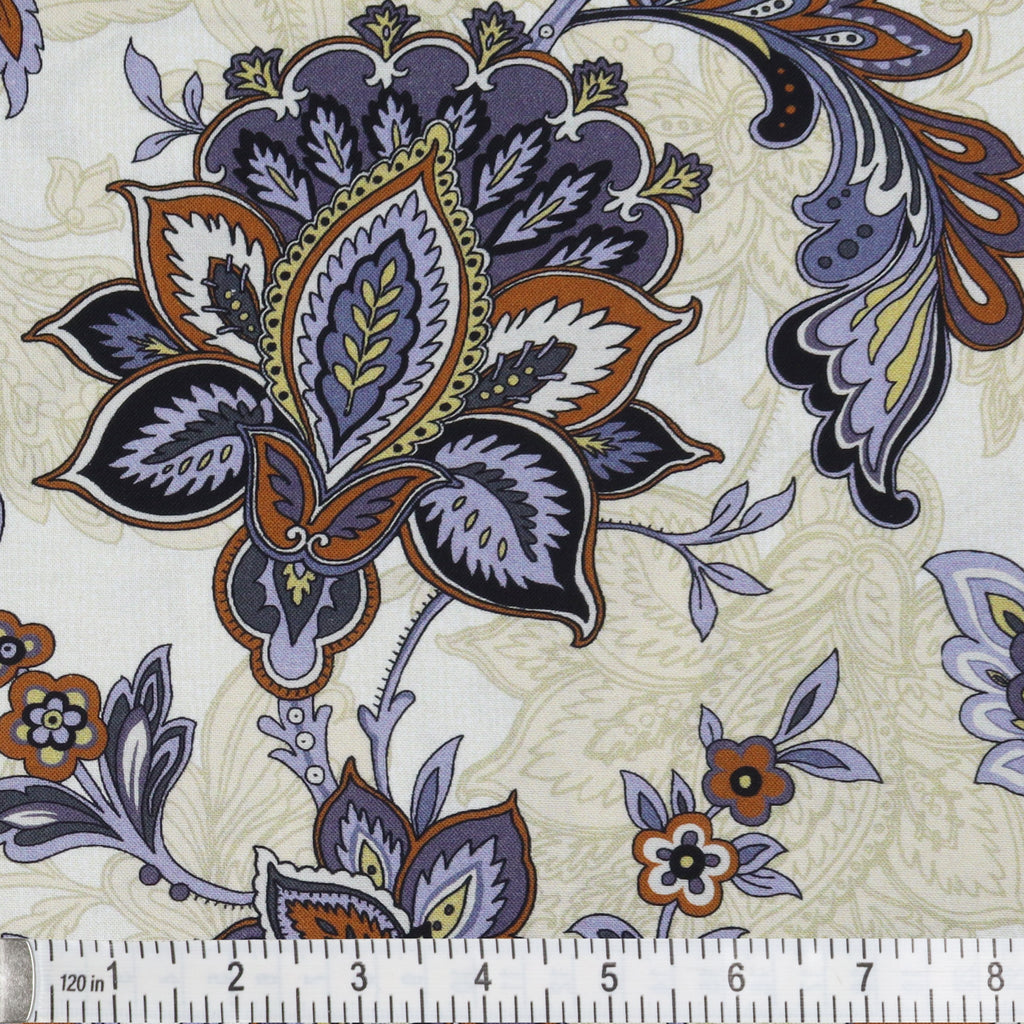 Pat Sloan's Drawing Room 108" wide quilt backing fabric brings timeless elegance and comfort to the back of your quilts. Crafted from 100% premium cotton, this collection features graceful Jacobean-inspired florals and intricate motifs reminiscent of antique woven rugs. With a rich palette of blue, beige, toast, gray, charcoal, navy, sky blue, and cream, these wide-width prints offer both beauty and practicality—eliminating the need for pieced backings and making them ideal for full-size quilts, wall hangings, duvet covers, and more.