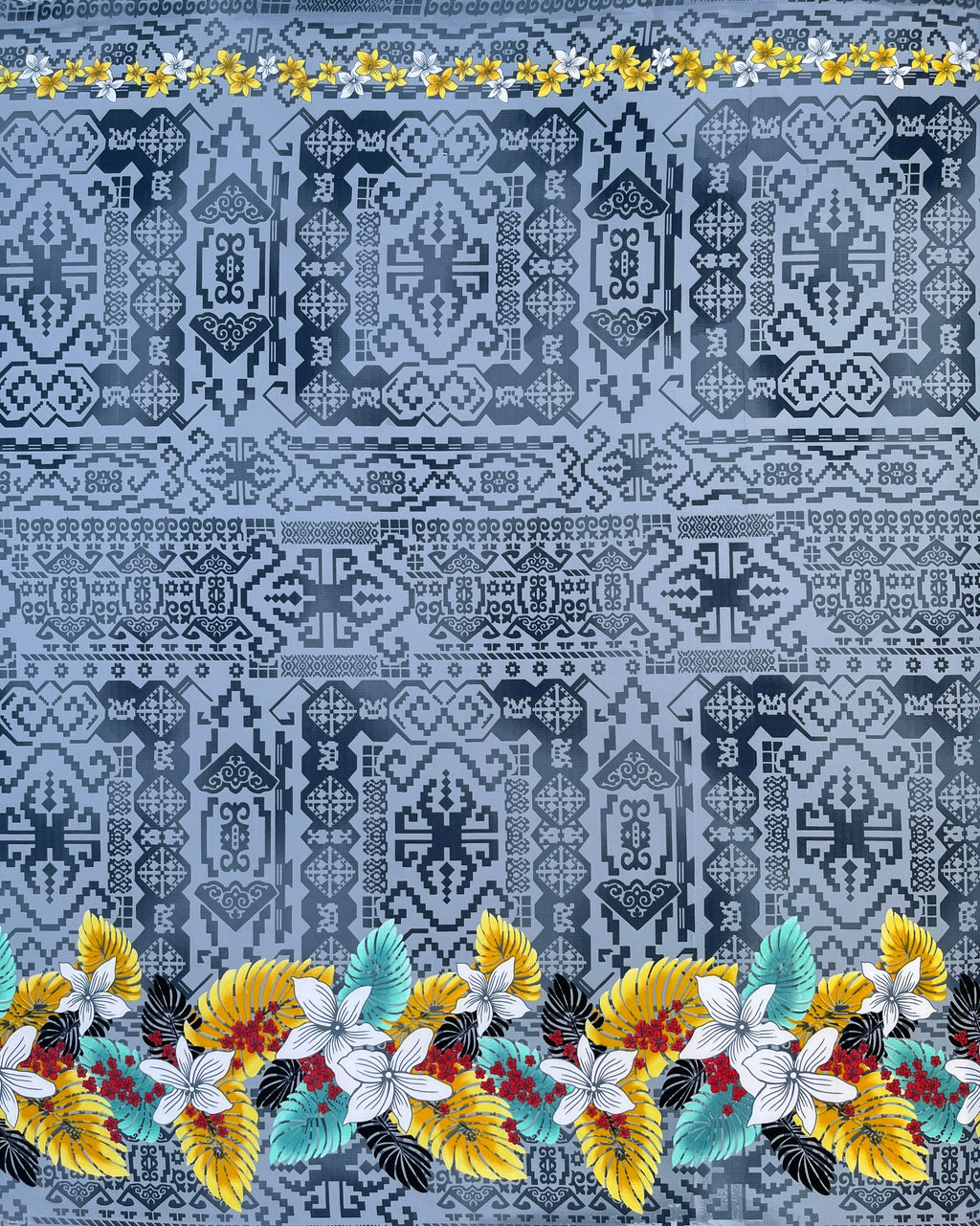 • Details: This is an amazing full pattern Polyensian Hibiscus & Plumeria Flowers with border flowers.