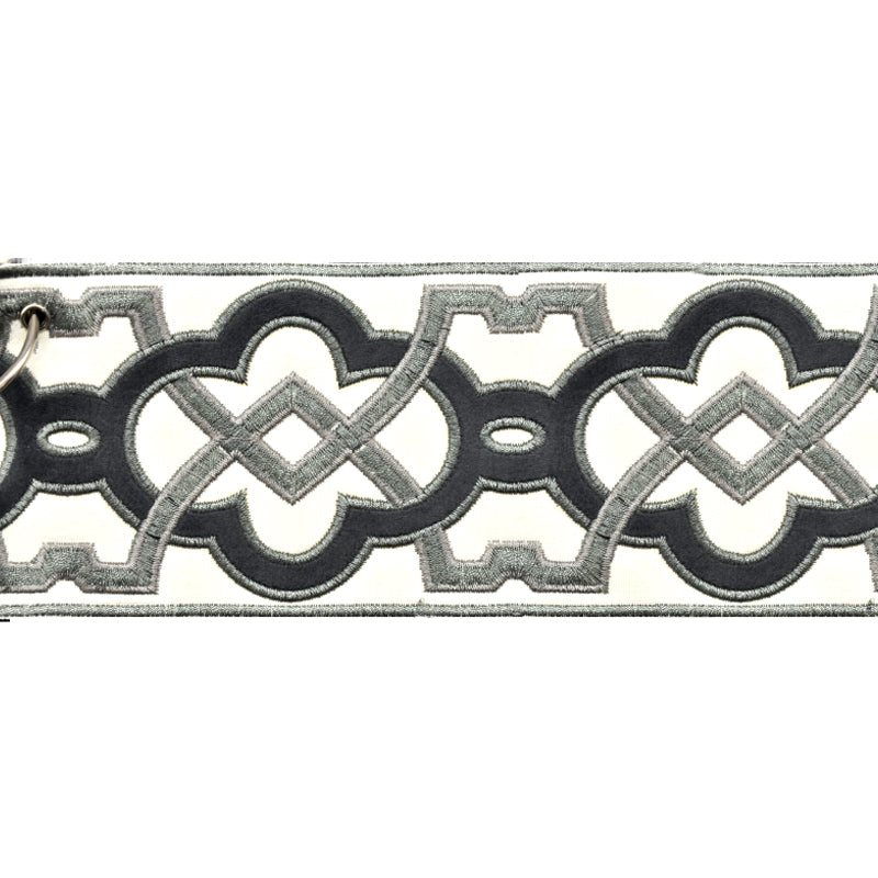 Velvet Embossed Decorative Trim Tape - 3 1/2" Width (25 Yard Roll) - BR-7337-49 Grey/Charcoal