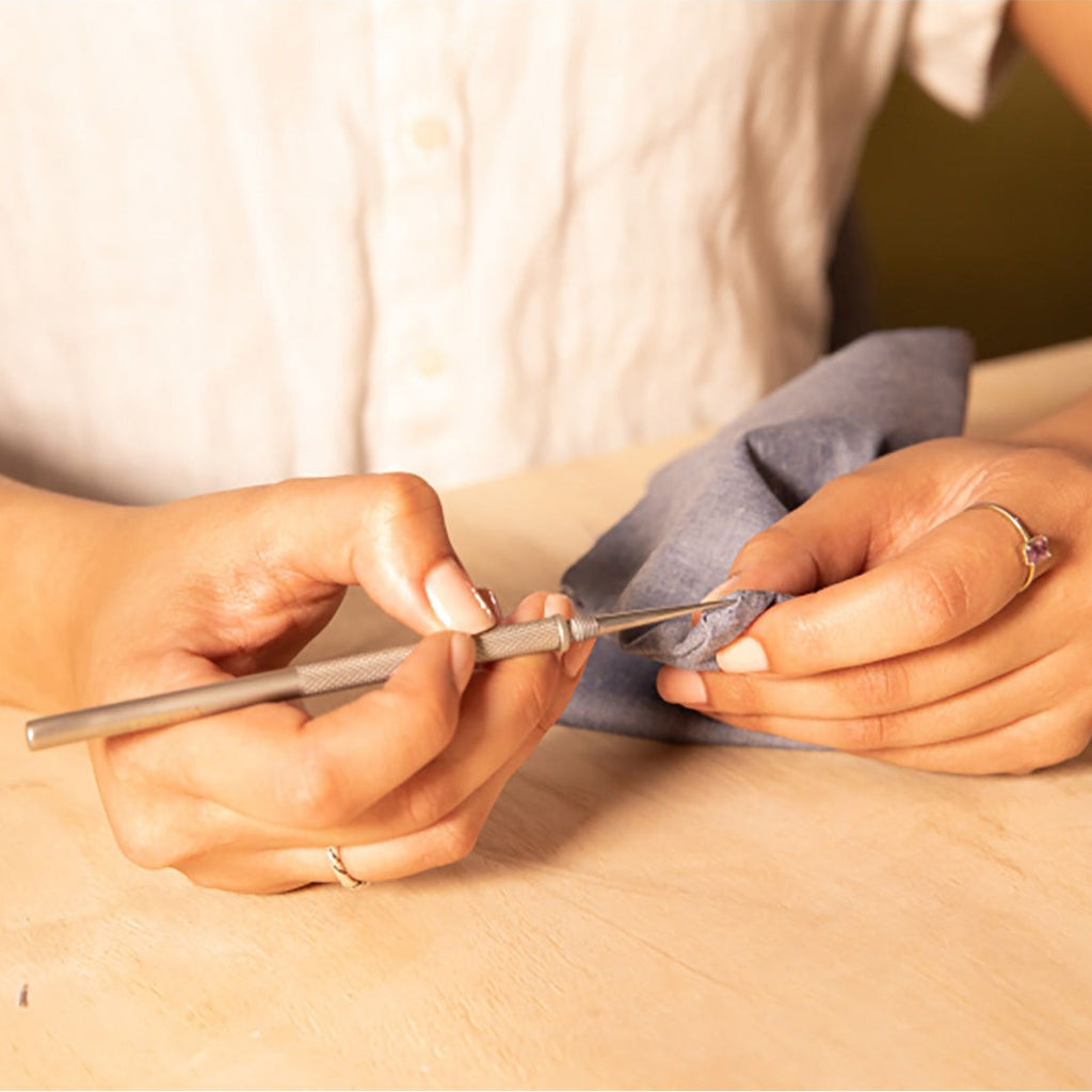 The Viking 6" Safety Stiletto is a versatile, multipurpose tool designed for removing fine stitches and guiding fabric with precision while sewing. Its compact, removable tip can be screwed into the body for safe storage, protecting both the tip and the user. Crafted with honed stainless steel blade edges, the Safety Stiletto allows for close thread cutting with a fine, precise tip, making it ideal for detailed sewing work. The compact size makes it easy to store and take on the go, while the power lock screw design ensures the tip stays secure during use. With a non-corrosive finish for durability and easy cleaning, the Viking 6" Safety Stiletto is an essential tool for sewists, quilters, and embroiderers who need precision, safety, and convenience in one compact tool.