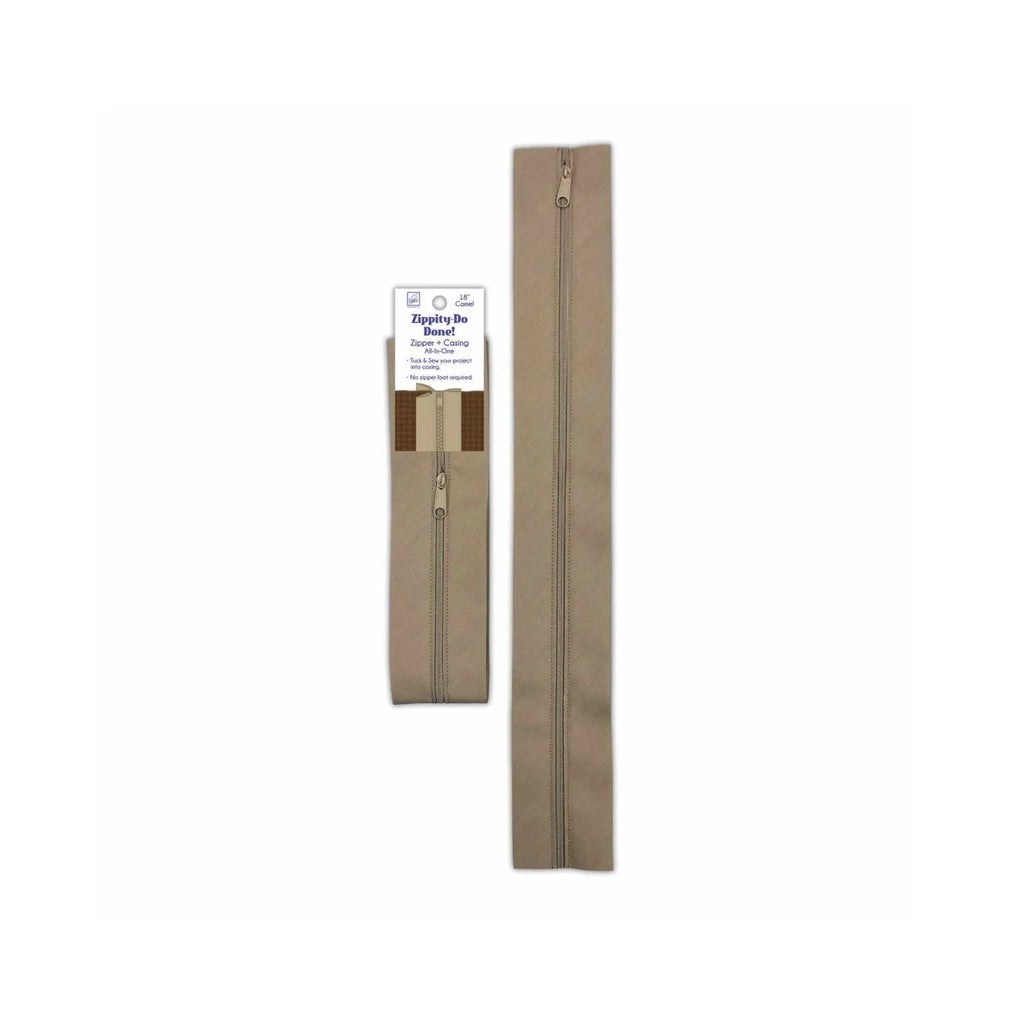 Make zipper installation fast and frustration-free with Zippity-Do-Done Zippers, available in both 18" and 36" lengths. These innovative, pre-sewn zippers come with attached fabric casing—just tuck in your project and sew. No zipper foot needed! Perfect for crafting stylish totes, pillow covers, project bags, and more. Available in a range of versatile colors to suit your next creative project. Please note that the 18" version comes with one zipper pull, while the 36" version includes three zipper pulls.